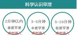 轻度早泄:阴茎在阴道内时间1-3分钟,能够抽动十五次以上,但是不能控制高潮。